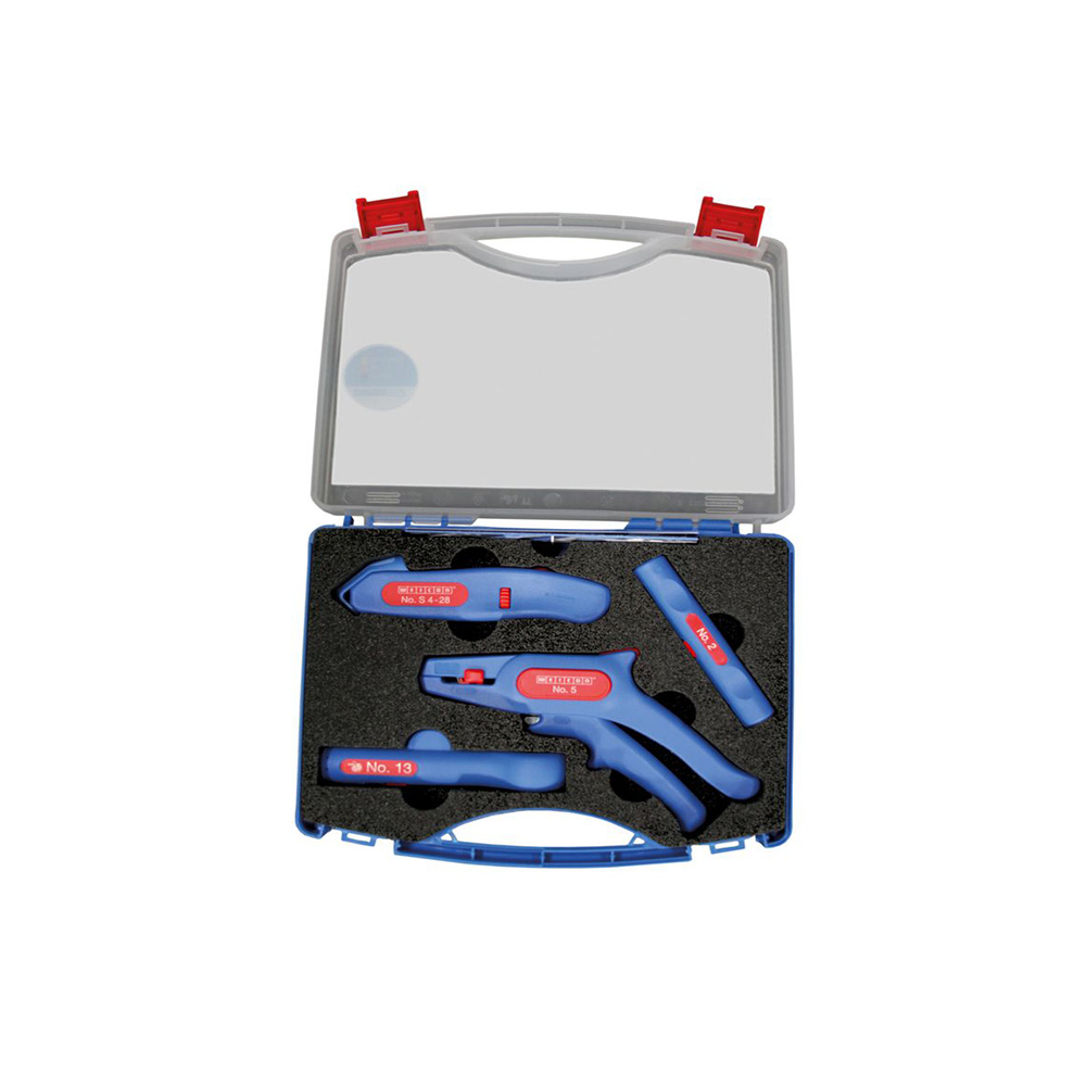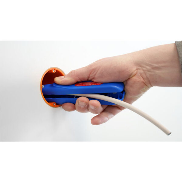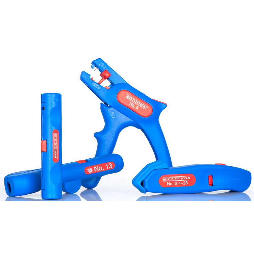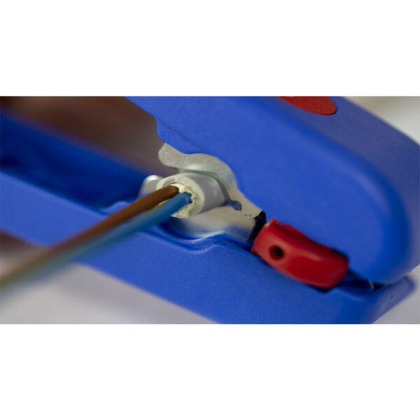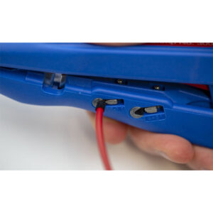 Multifunctional with 4 functions I Round cutting – longitudinal cutting – stripping – cutting I Flush stripping even in locations difficult to reach I Working range 0.5 – 6 mm² / 8 – 13 mm Ø I Secure and space-saving storage thanks to interloc