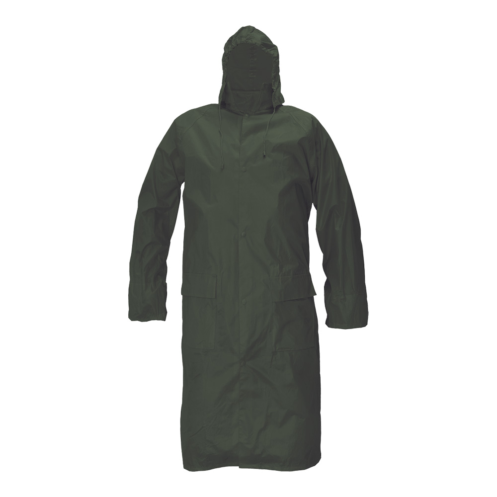 Description: prolonged waterproof ¾ coat with a hood » taped seams » 2 front flap pockets » inner rubber hem » underarm and back side ventilation » practical package.