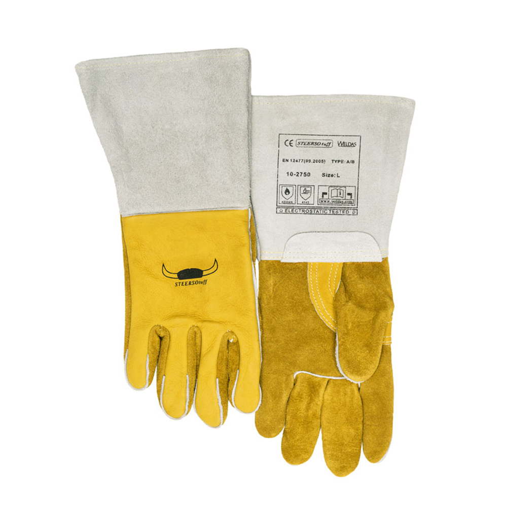 Welding glove made of blue shoulder split cowhide with COMFOflex® lining, wide body model and reinforced thumb