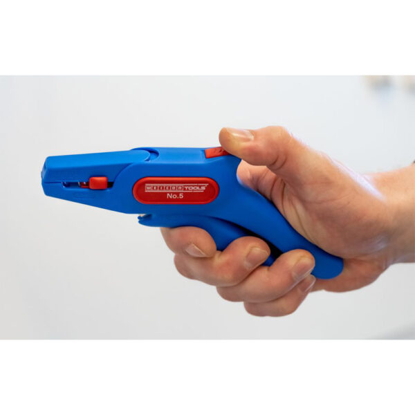 The WEICON Wire Stripper No. 5 is suitable for stripping all stranded and solid conductors from 0.2 – 6.0 mm². The wire stripper also has a visual length scale from 5 – 12mm. The length stop can be removed, if required. A well-accessible side cutter is integrated in the tool, which is suitable for cable diameters up to 2 mm. The blades are replaceable. The low weight of the No. 5 ensures fatigue-free working.